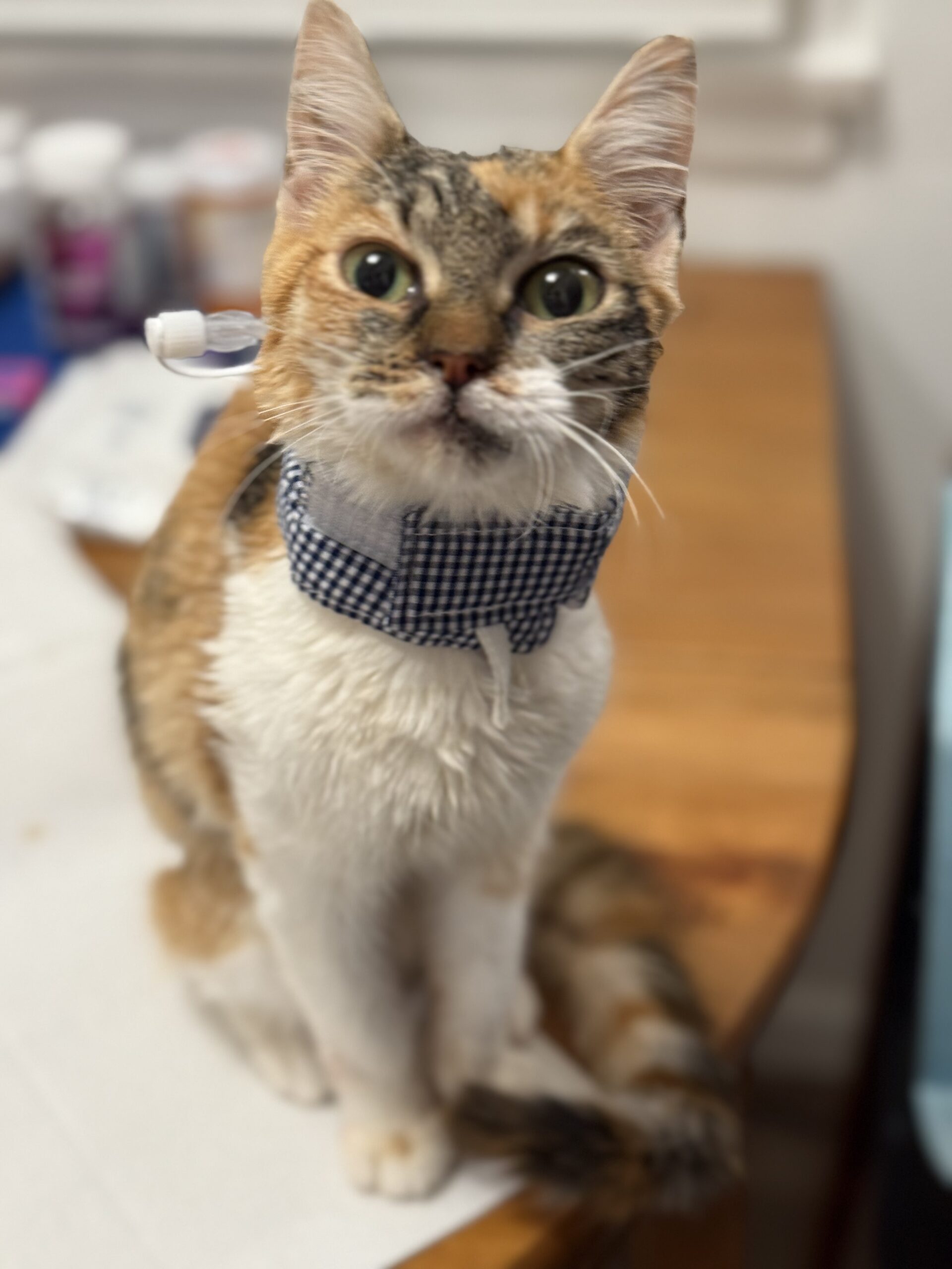 Sweet Autumn came to us completely starved and sick. She's needed a feeding tube since arriving in our care. She has a condition that boils down to closed sinuses, meaning she cannot breathe when she eats, so we are saving up for special surgery to open her sinuses and give her a happy and healthy life.