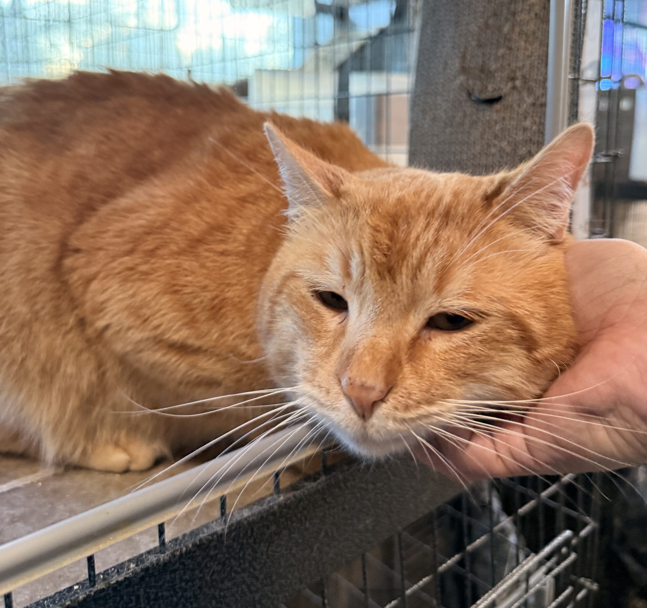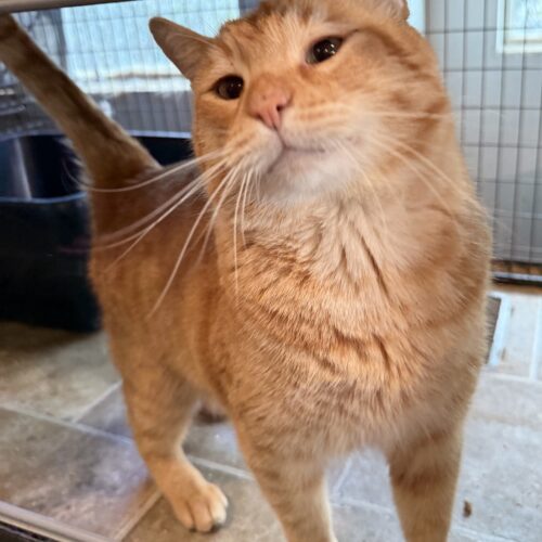 Sarge has mellow, friendly energy. He prefers to spend most of his time sleeping, with a small portion of the rest of his time gently demanding pets and chin scratches. Sarge can be guarded at first in a new environment, but some love makes him relax and open up quickly. He would do great in a low-energy home, or with a family that wants a casual, easygoing couch potato cat. Sarge will enforce his personal space with nips if he's pestered, so we don't think he would be happy in a home with small children.