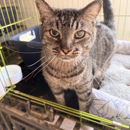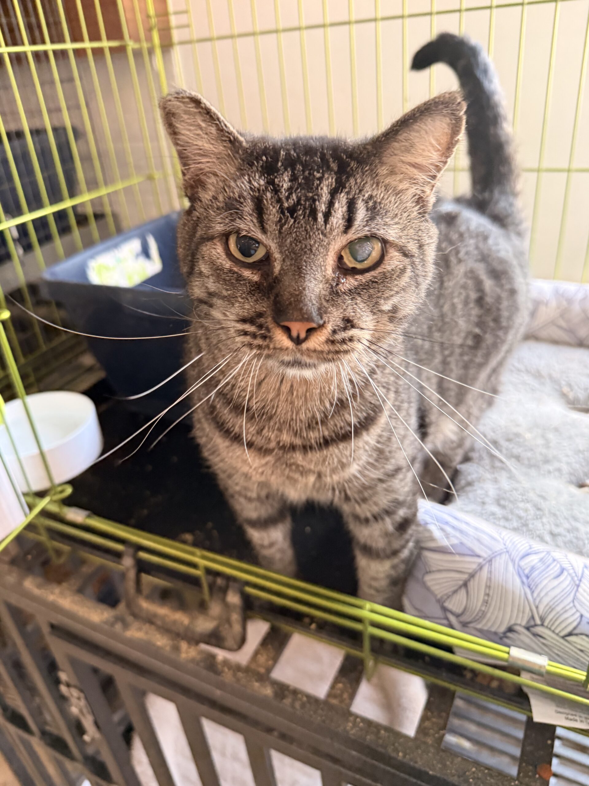 Travis LOVES other cats, and serenades the other rescue cats from his enclosure. However, Travis HATES people, no ifs, ands, or buts.